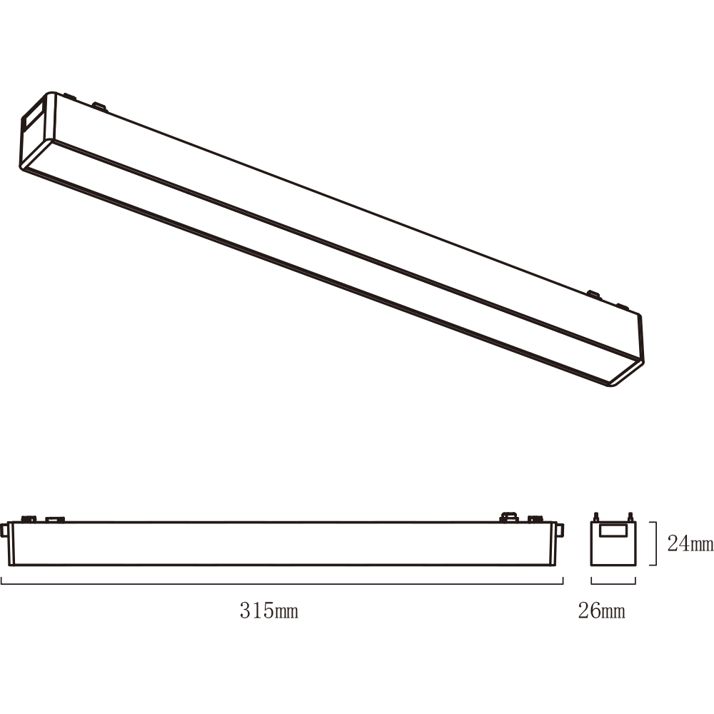 SPECIFICATION Product Code : LSD-MT26-300F Product Detail : Magnetic Track Light CRI : Ra90 Watt : 10W Voltage : 48V Dimension : 24×26 mm. Color : Black / White Material : Aluminum + Plastic